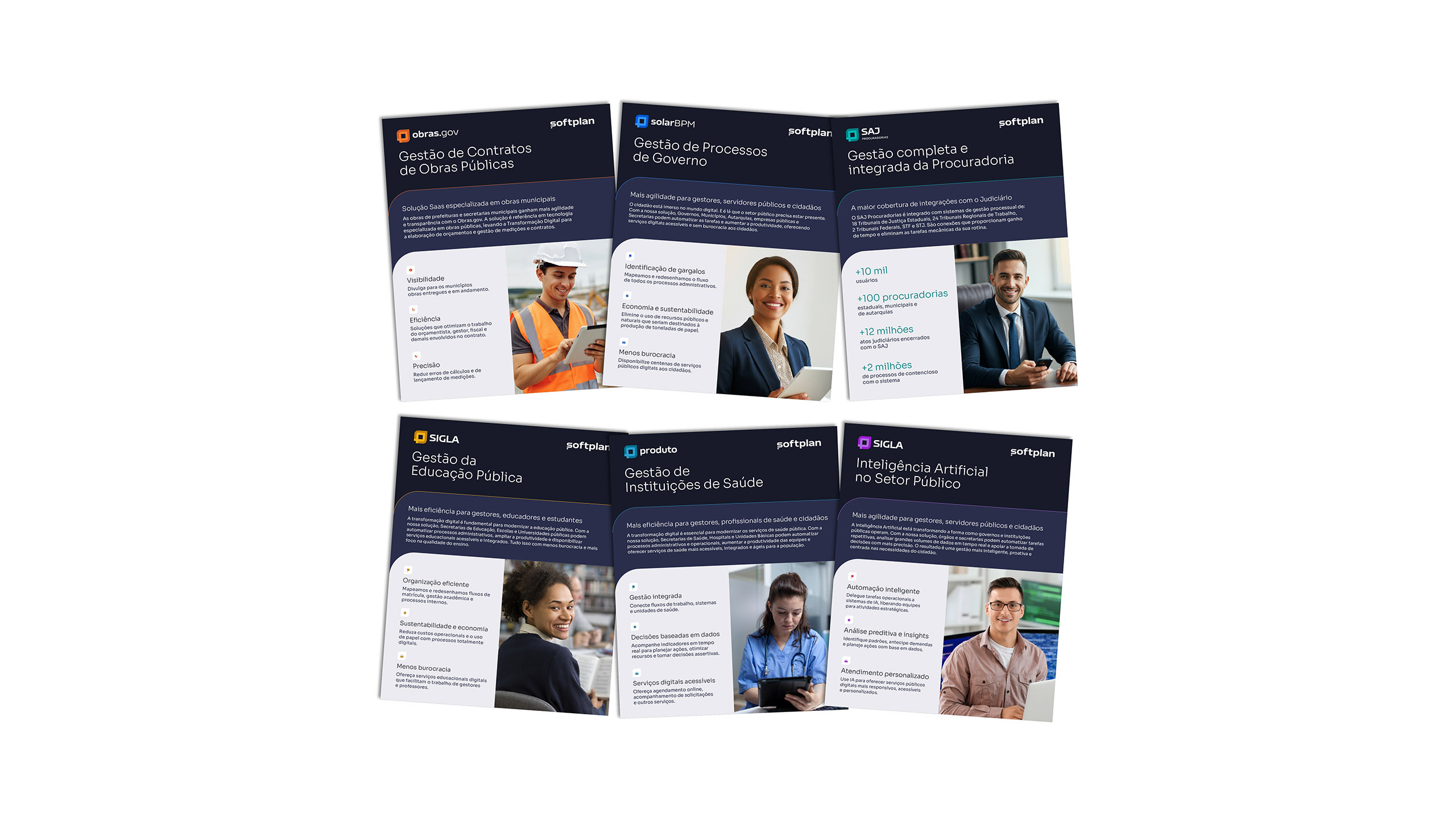 Cada vertical da marca Softplan é composta por diversos produtos, unidos pelo mesmo isotipo. Siga as diretrizes ao lado para a construção destas marcas. Cada vertical possui cores proprietárias que devem ser seguidas nestes desdobramentos.